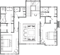 The Battle of Saratoga was the turning point of the American Revolutionary War, leading to the defeat and surrender of the British army in 1777. The Stone base of this traditional 5-bedroom, 71/2-bath home grounds it to the forest as the sweeping gable, combined with a bracketed porch, connects it to the landscape. The Saratoga home features 2 master bedrooms, generous Terraces on multiple levels, and gracious living and dining areas with views into the valley and beyond.